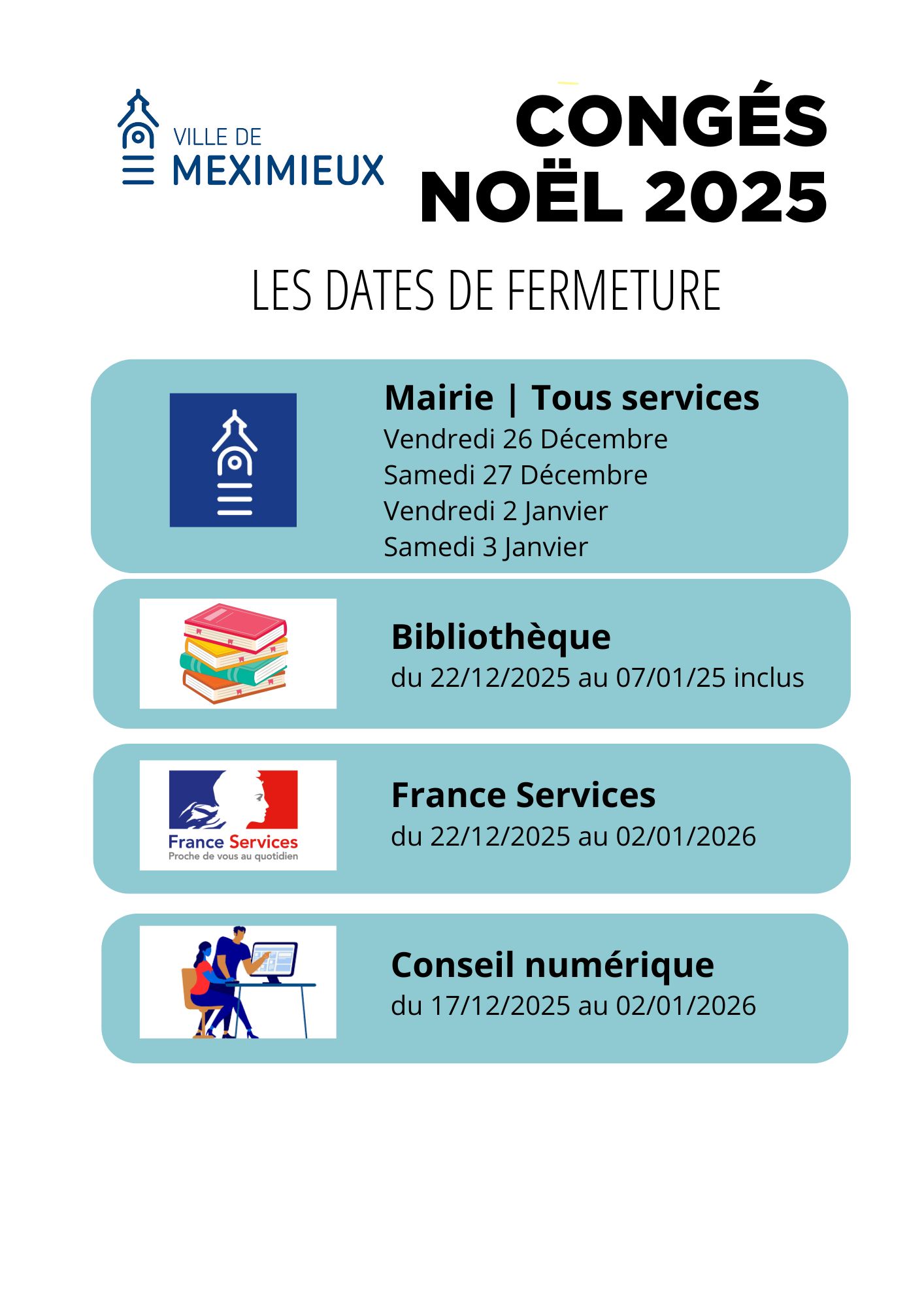 LECTURE THÉATRALISÉES | NOËLOrganisée par la bibliothèque de MeximieuxC’est avec des histoires empreintes de magie hivernale que Matou Lalu viendra fêter Noël avec nous le mercredi 3 décembre à 10h (entrée libre et gratuite) ! La bibliothèque sera fermée à partir du samedi 20 décembre 2025 à midi. Réouverture le mercredi…