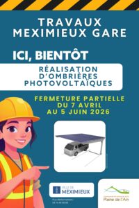 1ère édition de la COURSE DE CAISSE A SAVON Une initiative de l'Union des Commerçants Artisans de Meximieux et Ville de Meximieux La CCPA opère des travaux pour la pose d'ombrières photovoltaïques du 7 avril au 5 juin 2026 sur le parking multimodal de la...