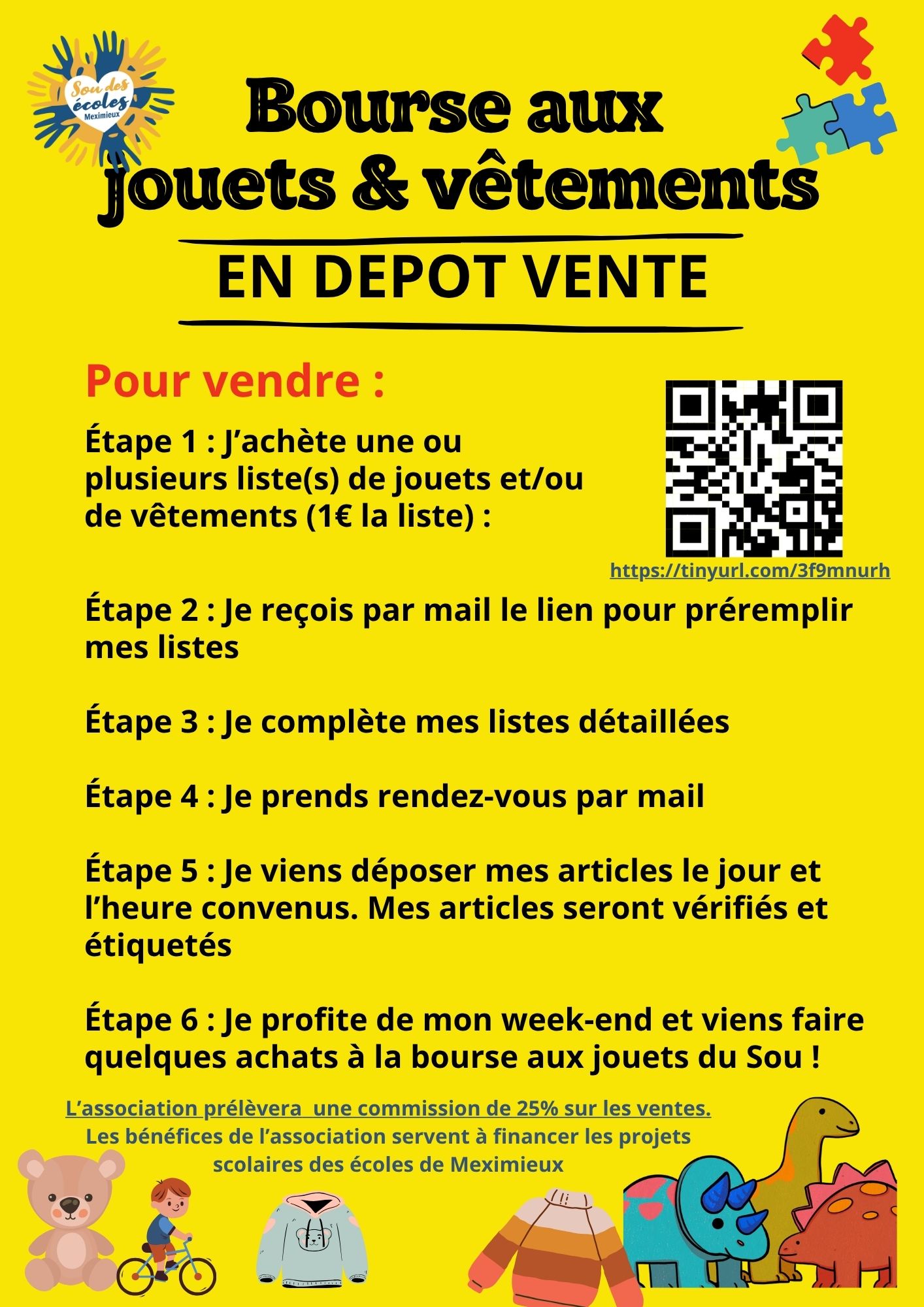 Comme l’an dernier, la bourse sera organisée sous forme de DÉPÔT VENTE afin que tous ceux qui souhaitent vendre ne soient pas contraints d’être présents durant les créneaux de vente.