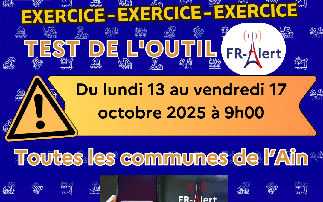 Dans le cadre de la journée nationale de la résilience, du lundi 13 au vendredi 17 octobre 2025, une campagne d’essai du dispositif « FR Alert » sera réalisée et concernera l’ensemble de la population Aindinoise. La diffusion sera réalisée à 9h00 chaque jour et suivra le calendrier suivant :