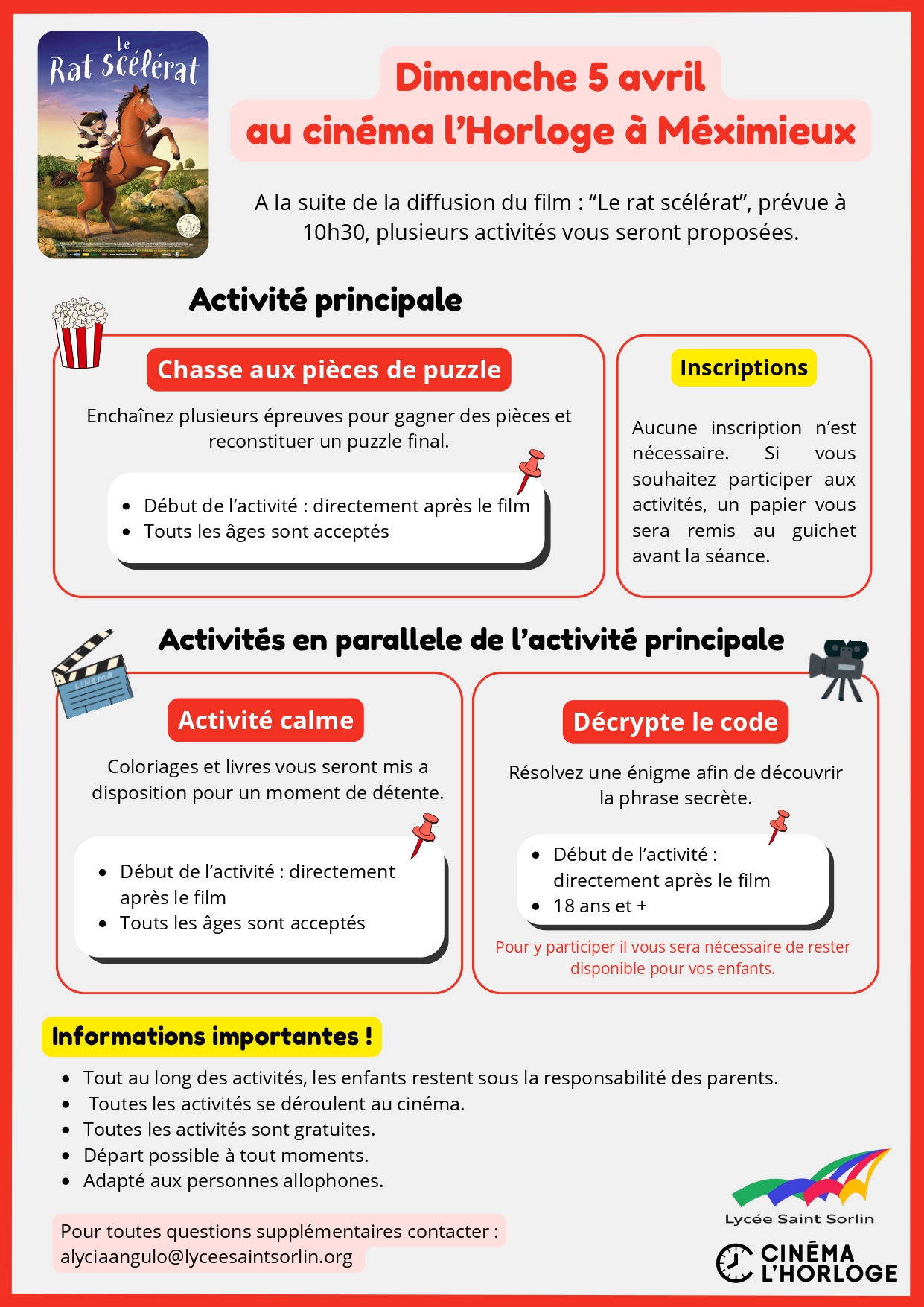 Organisé  par le Lycée de St Sorlin et le cinéma l’Horloge de Meximieux